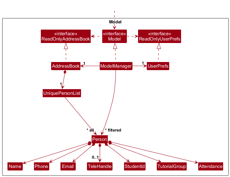 Personobjects (which are contained in aUniquePersonListobject). EachPersoncorresponds to a CS2040S student and hasName,Phone,Email,TeleHandle,StudentId,TutorialGroup, andAttendance(per-week flags). - stores the currently ‘selected’