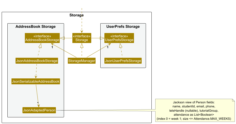 AddressBookStorageandUserPrefsStorage, which means it can be treated as either one (if only the functionality of only one is needed). - depends on some classes in the